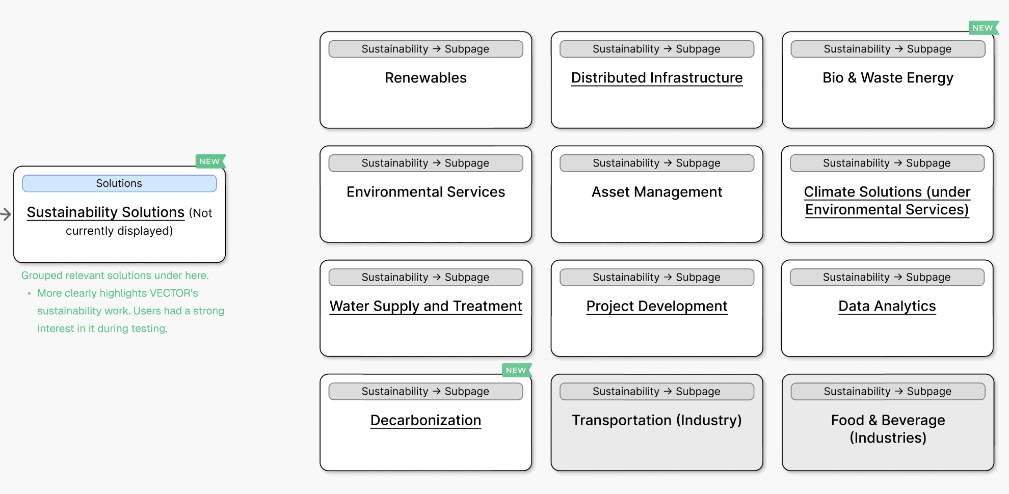 Sustainability was moved to the primary nav as per our research findings