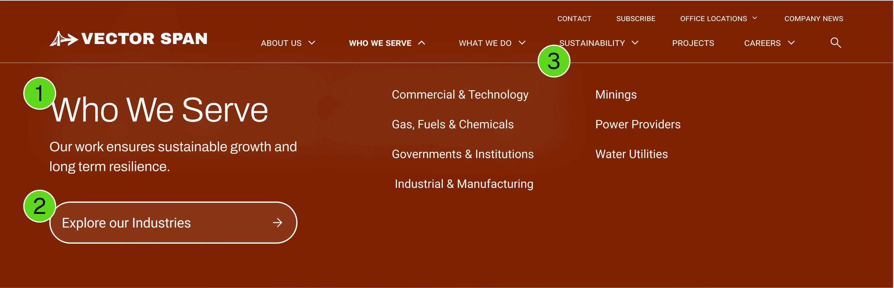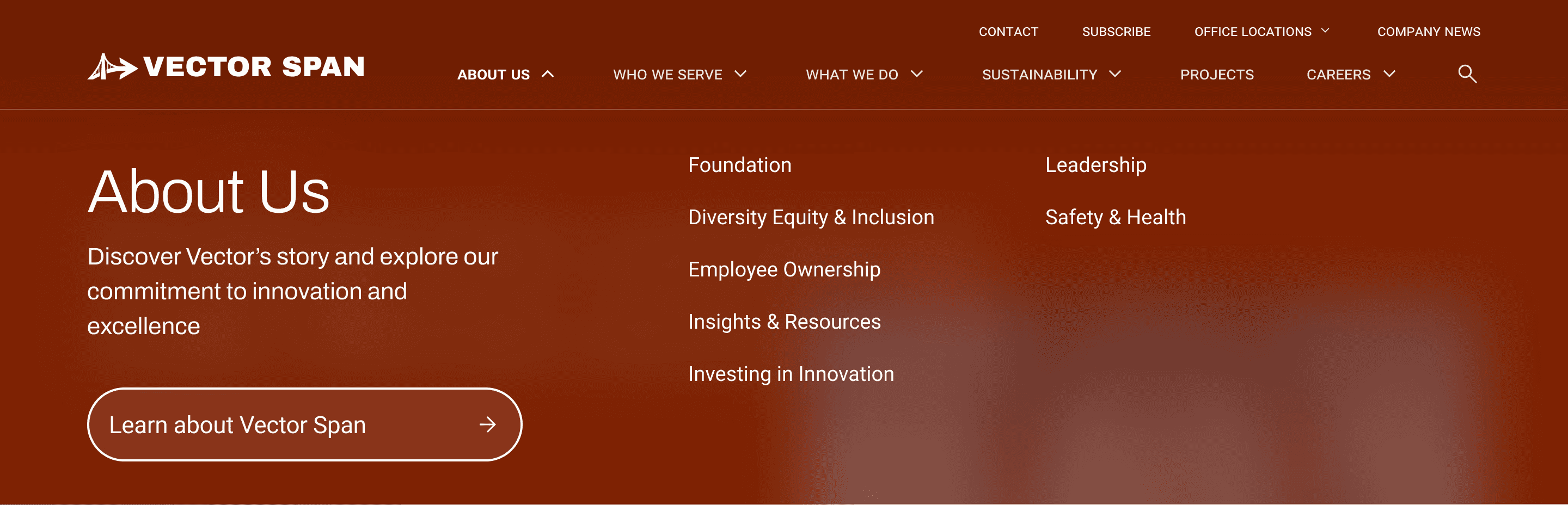 Vector Span is a global infrastructure leader. Their site suffered from 3,000-page Information Architecture (IA) focused on internal silos rather than client acquisition and showing an integrated service offering.